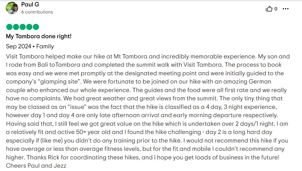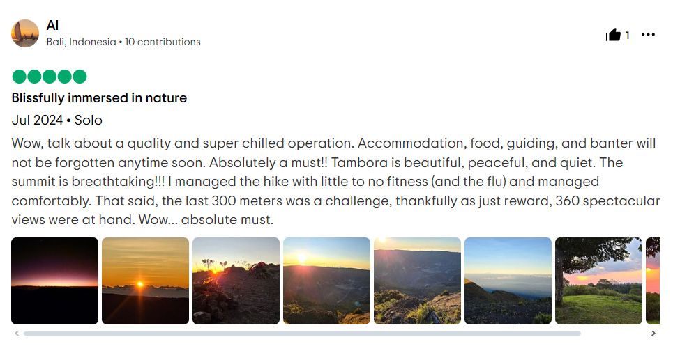 The hike to the rim of Tambora’s caldera is physically demanding but not technically difficult, making it accessible for most trekkers. The trail is well-maintained and solid, requiring no climbing skills.